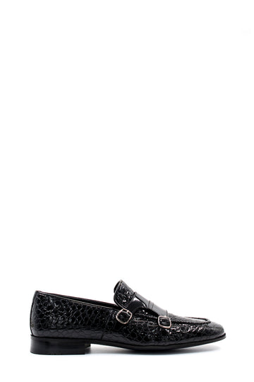Siyah Timsah Desenli Çift Tokalı Loafer - Wessi