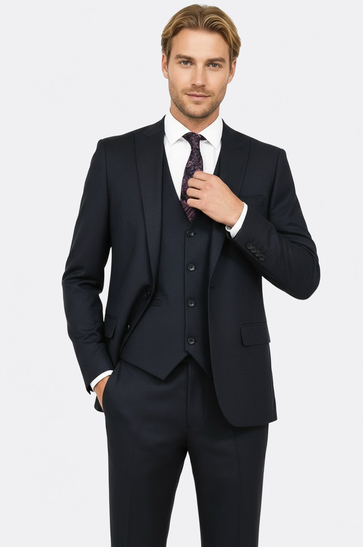 Slim Fit Desenli Lacivert Erkek Takım Elbise - Wessi