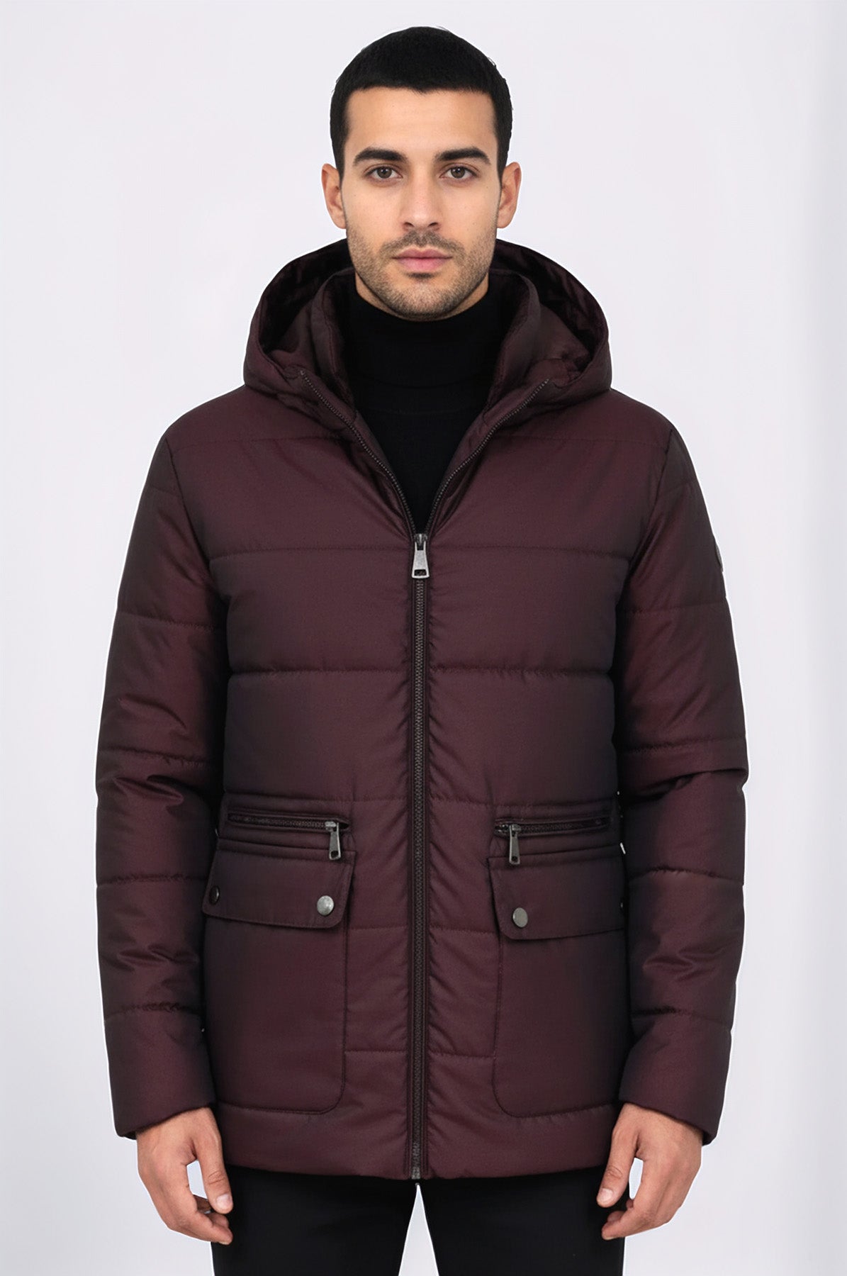 Slim Fit Kapüşonlu Bordo Erkek Şişme Mont - Wessi
