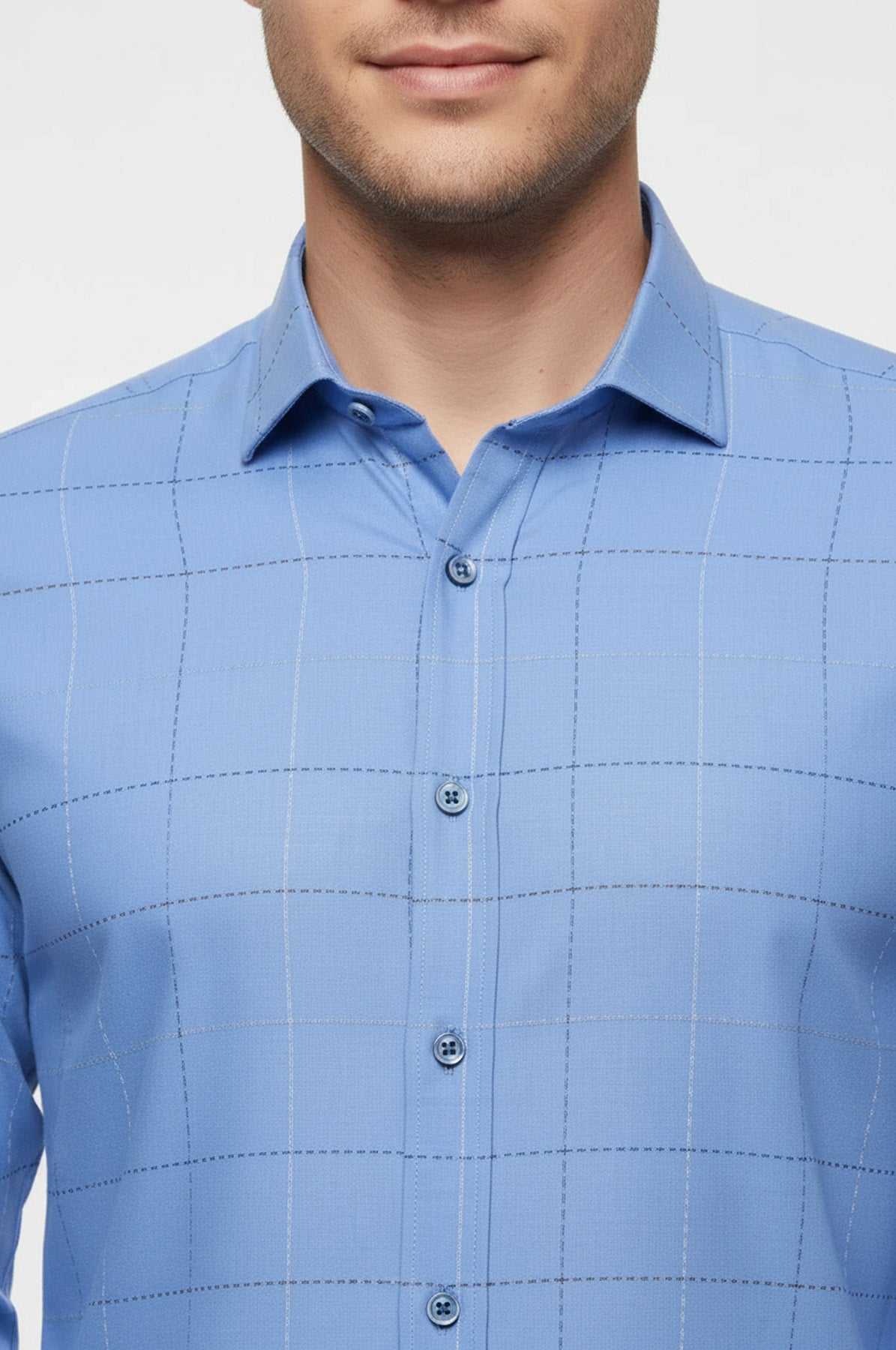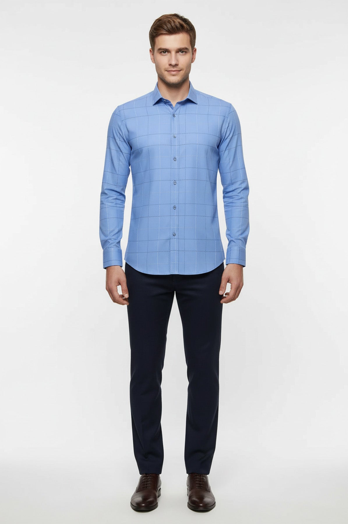 Slim Fit Kareli Mavi Gömlek - Wessi