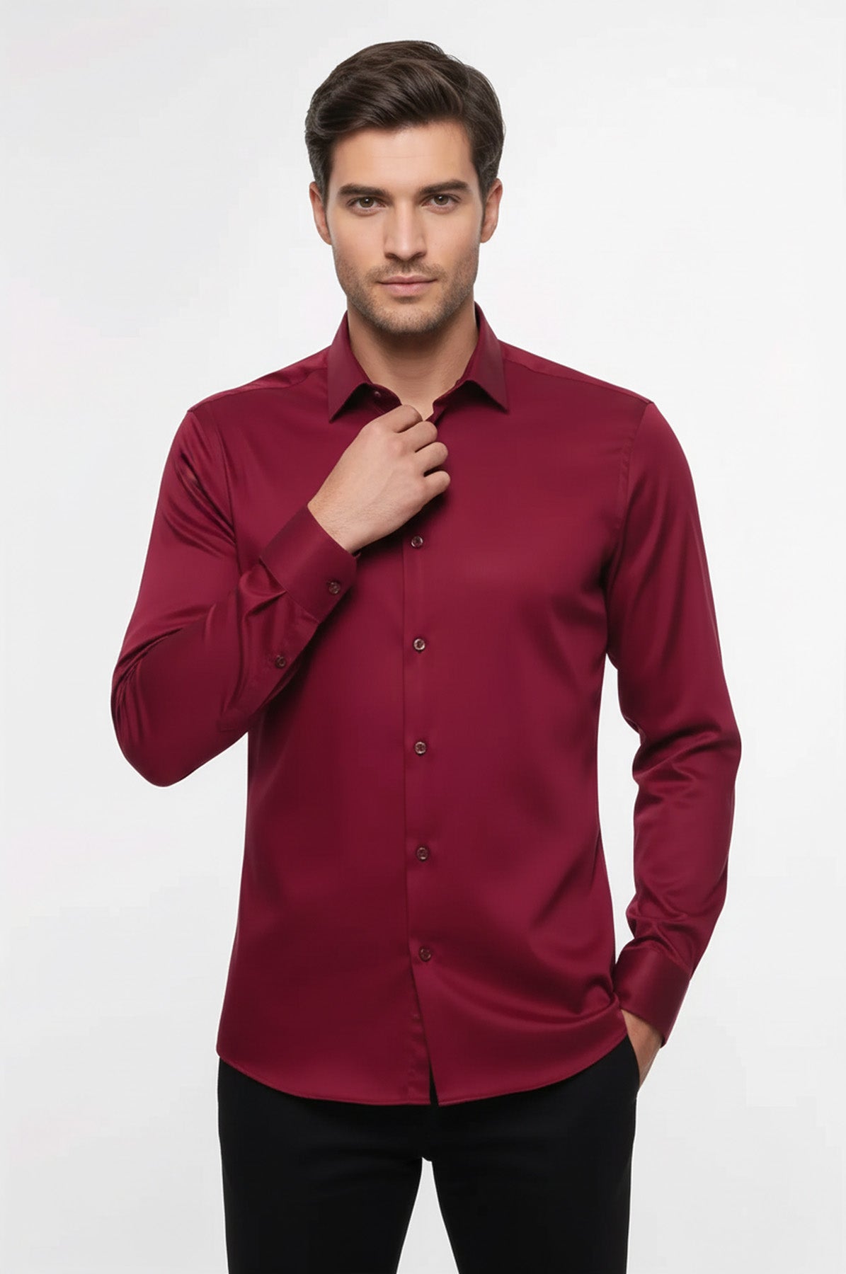 Slimfit Uzun Kollu Bordo Erkek Gömlek - Wessi