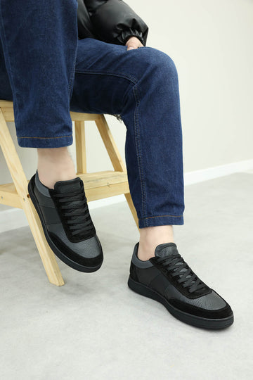 Süet Detaylı Siyah Deri Erkek Spor Ayakkabı - Wessi