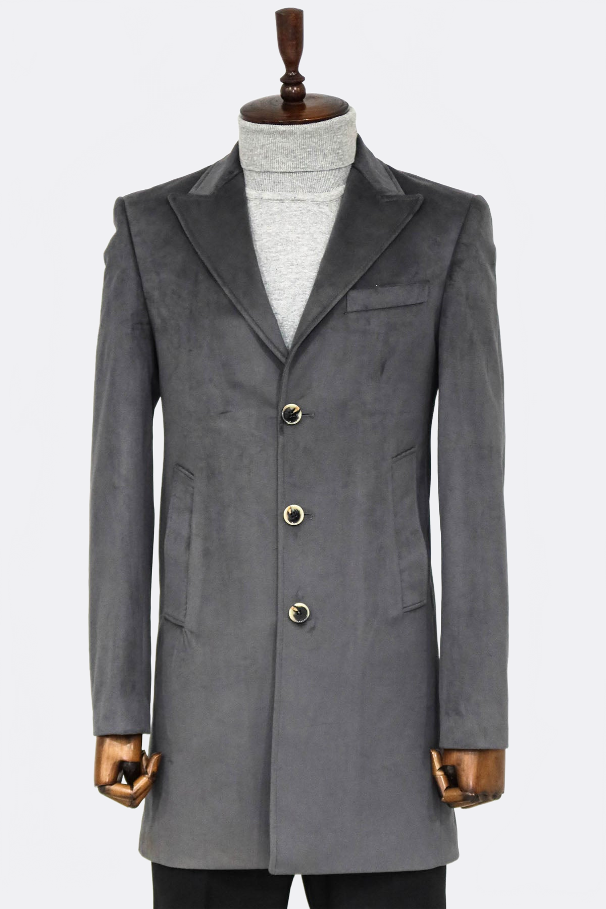 Süet Slim Fit Uzun Gri Erkek Kaban - Wessi