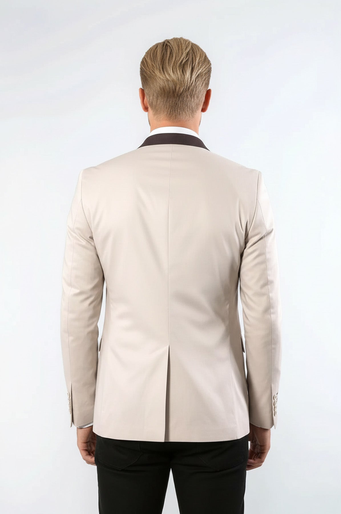 Tek Düğme Hakim Yaka Krem Erkek Ceket - Wessi
