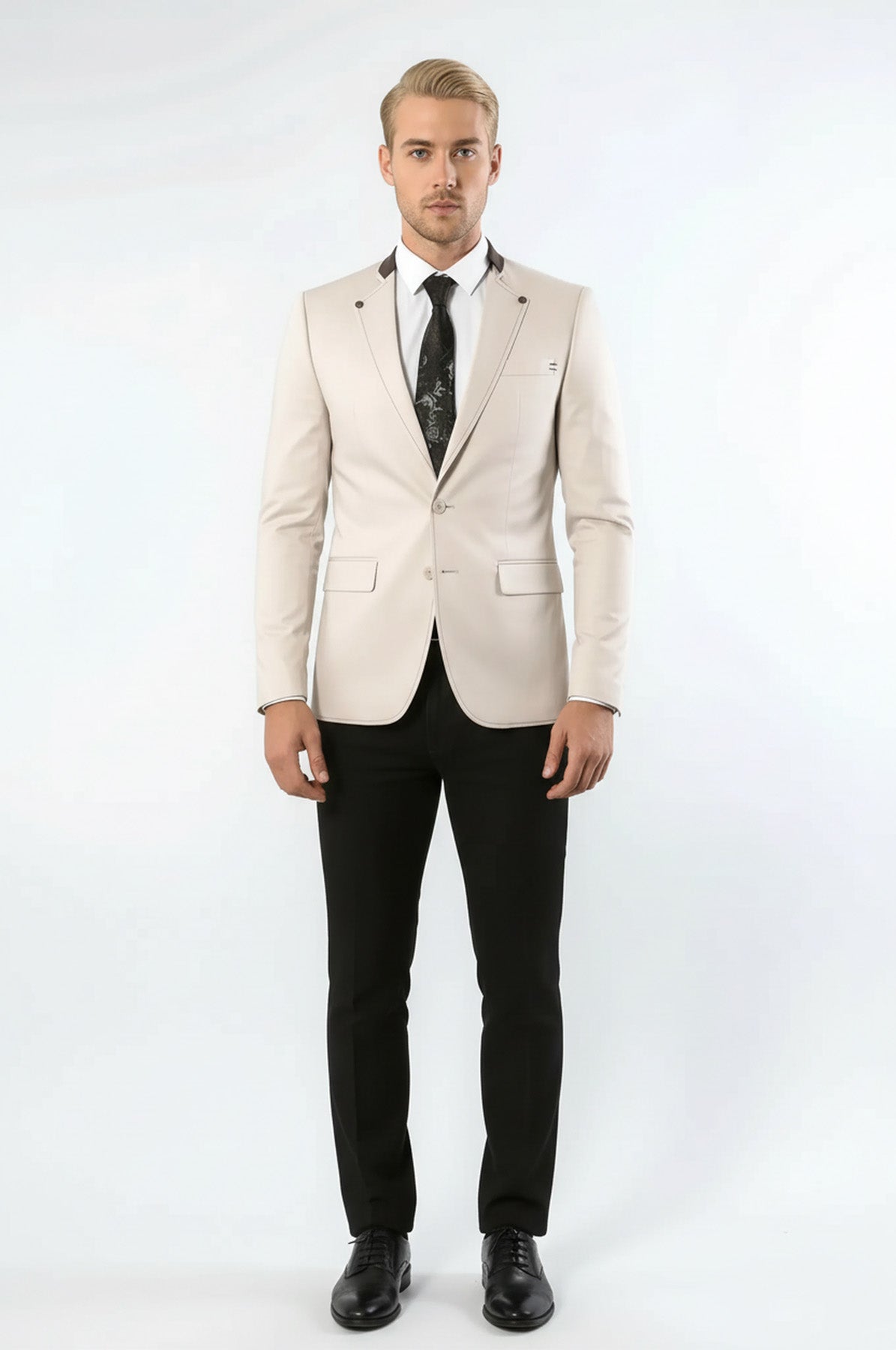 Pamuk Kumaşla Tasarlanmış Hakim Yaka Modelli Tek Düğme Slim Fit Krem Renk Ceket Modelidir. Tek Düğme Hakim Yaka Krem Erkek Ceket