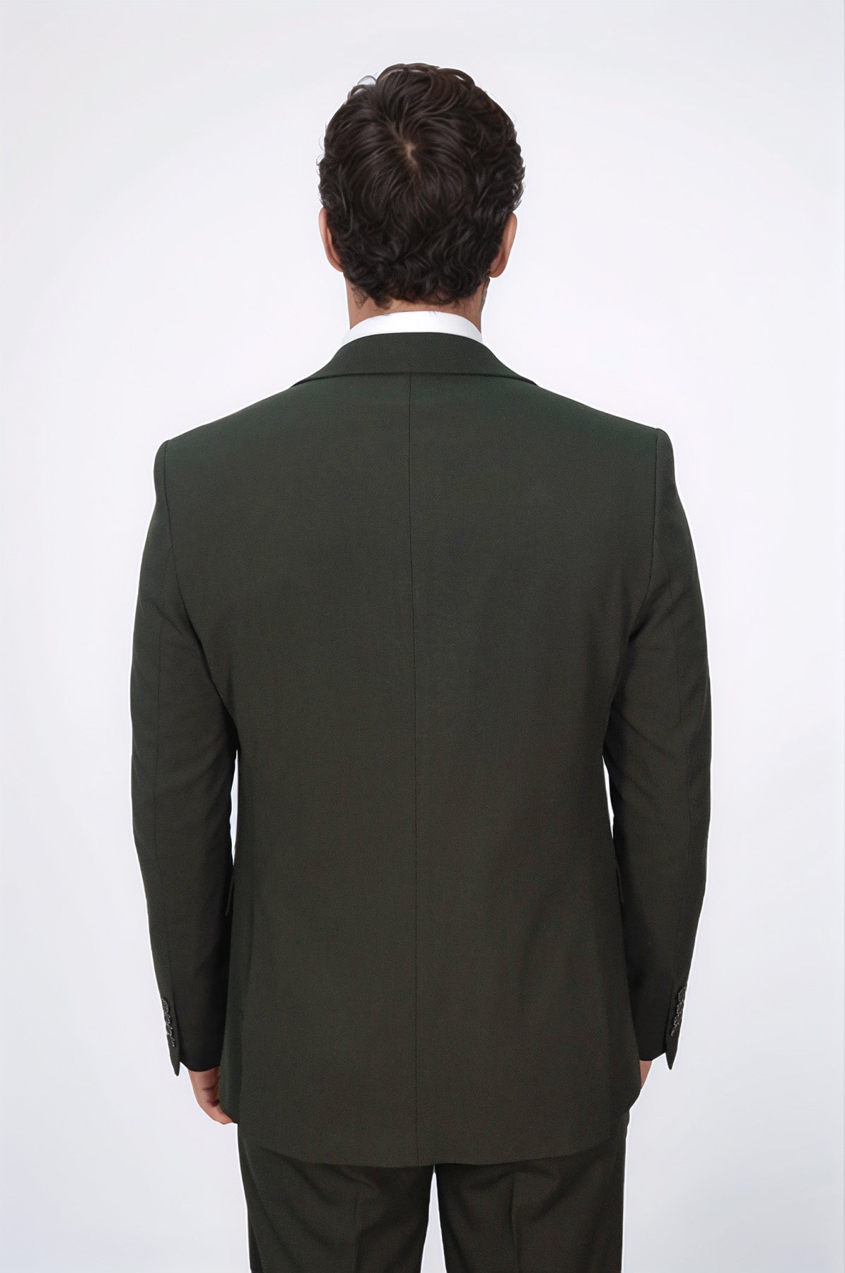 Tek Düğmeli Slim Fit Yeşil Yelekli Erkek Takım Elbise - Wessi