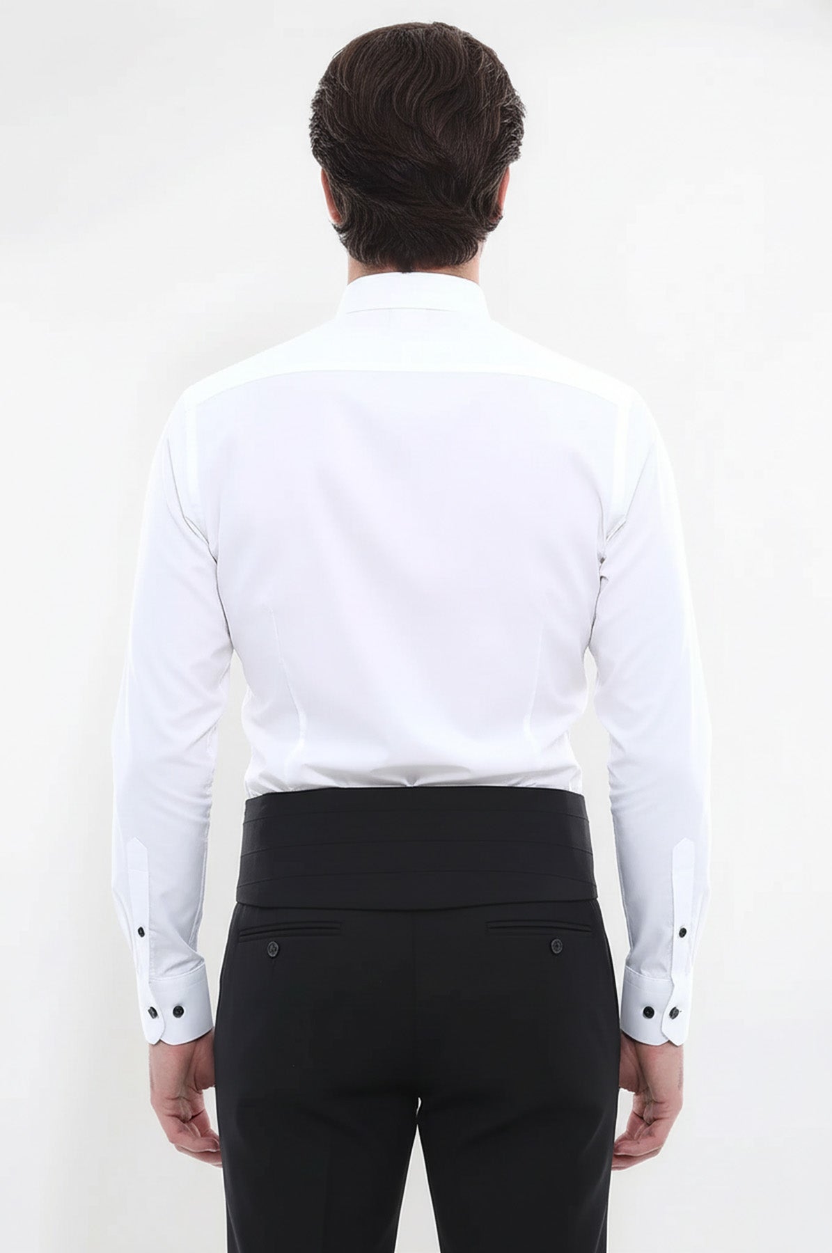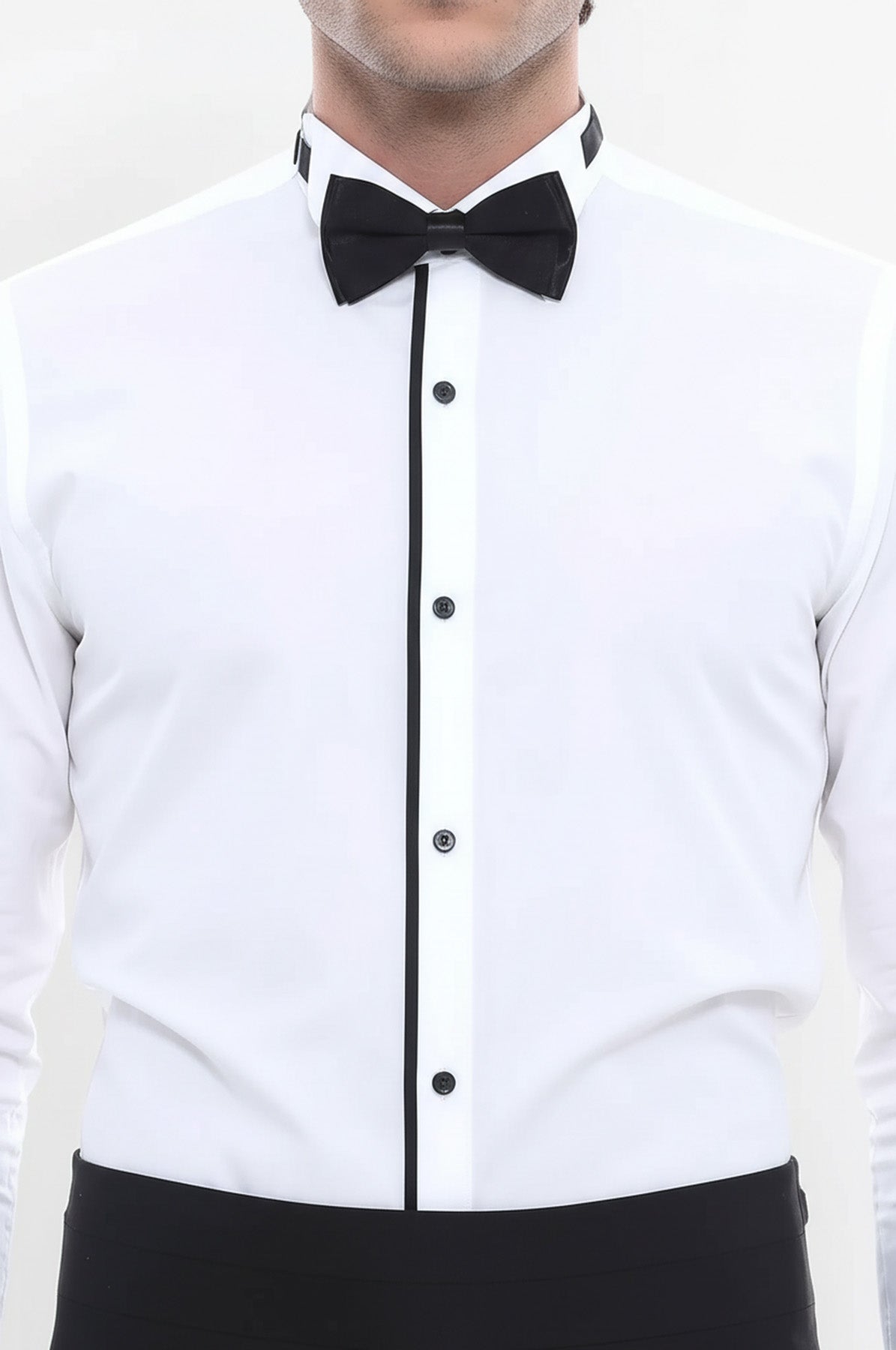 Bu uzun kollu erkek damatlık gömlek modeli sade ve şık bir modeldir. Slimfit ve dar kesim olan bu gömlek vücudunuza oturarak daha iyi görünmenizi sağlar. Ön düğmelerinin bulunduğu kısımdaki siyah renkli biye detayı gömleği hareketlendirerek renk katar. Manşetli kolları daha şık görünmenizi sağlar. Tamamen pamuktan oluşan kumaşı gece boyu en az şekilde terlemenizi sağlar. Bu gömlek modeli ile hem şık görünürsünüz hem de rahat hareket edebilirsiniz.