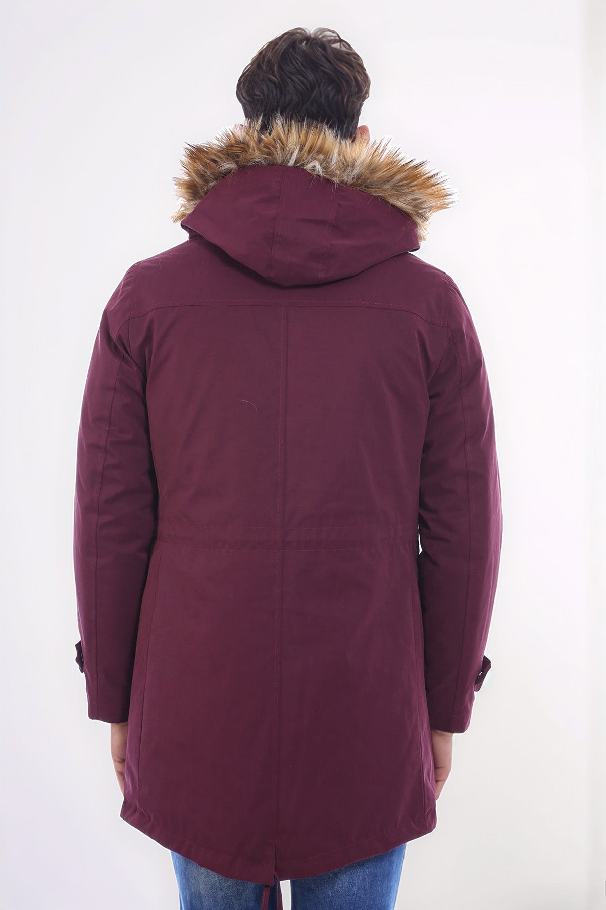 Yaka Kürklü Kapüşonlu Bordo Erkek Mont - Wessi