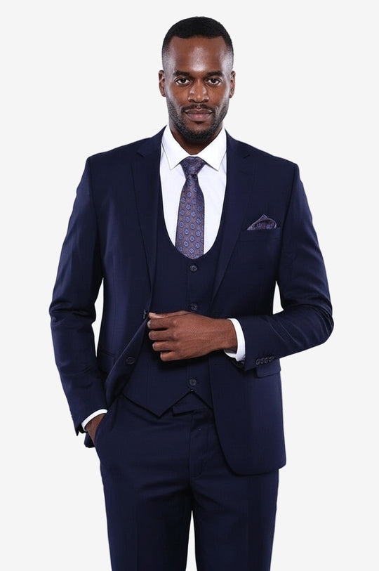 Lacivert takım elbise ile iş toplantılarından özel davetlere kadar her ortamda şık ve profesyonel görünün. Yelekli 3 parça tasarım ve slim fit kesimiyle sofistike bir takım.