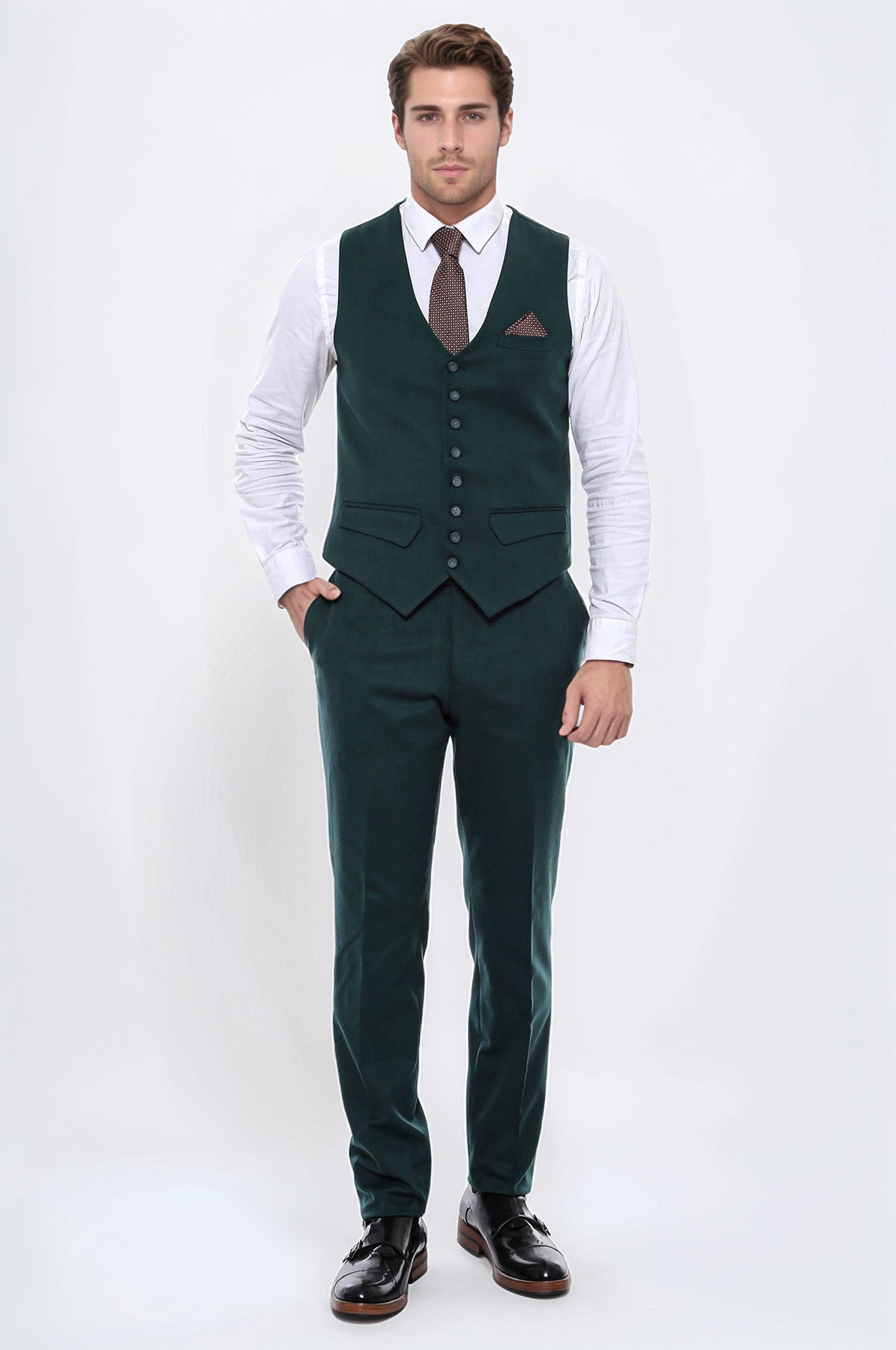 Yeşil Desensiz 8 Düğmeli Erkek Yelek - Wessi